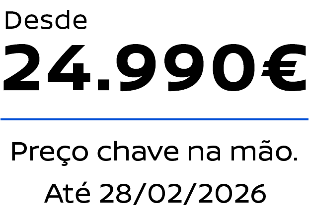 *Exemplo para Nissan Qashqai DIG-T E6D (140 CV) mHEV Acenta (2024), válido até 28/02/2026 para clientes particulares, em Portugal Continental. A informação disponibilizada não é vinculativa. Campanha limitada ao stock existente. Visual não contratual. Consumo combinado: 6,3l/100 km. Emissões de CO2: 144g/km.